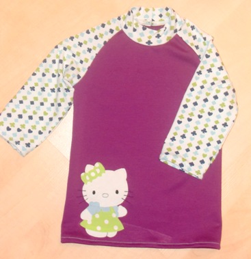 Jetzt ist es fertig (abgesehen vom Versäubern) und von perfekt weit entfernt (Nahtzugabe vergessen und der Halsausschnitt sieht sehr eng aus...schreit nach Auftrennen *heul*),